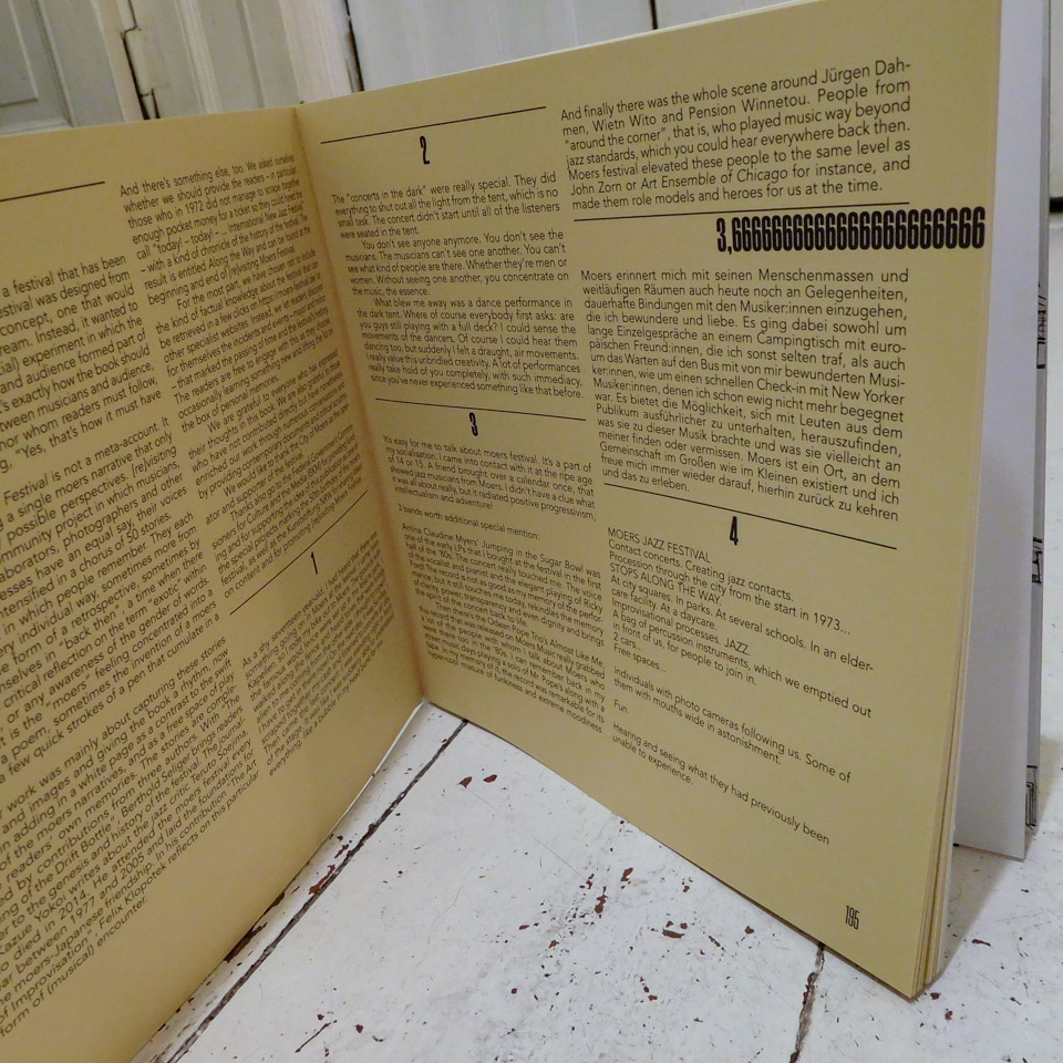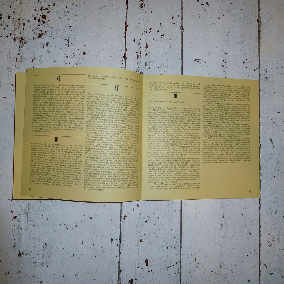 2021 erschien zum 50-jährigen Jubiläum des moers festivals die Publikation (re)visiting MOERS, für die ich einige Texte aus dem Englischen und Französischen ins Deutsche übersetzte.
